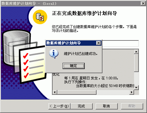 如果您今后需要对该技术任务进行调整,您可以在“数据库维护计划1”上点击鼠标右键,对相关设置参数进行变更